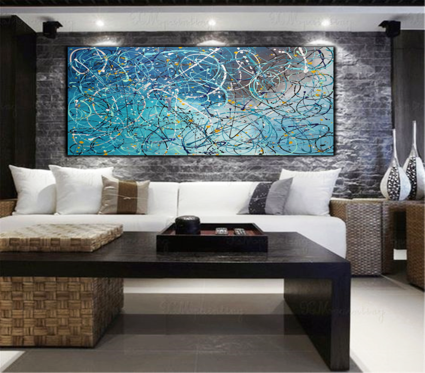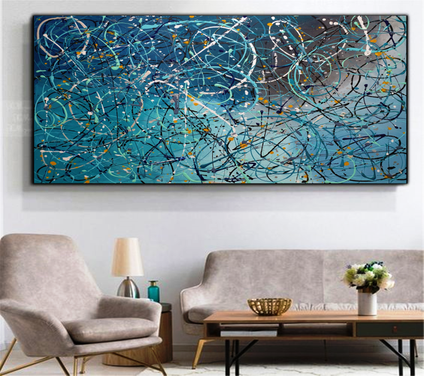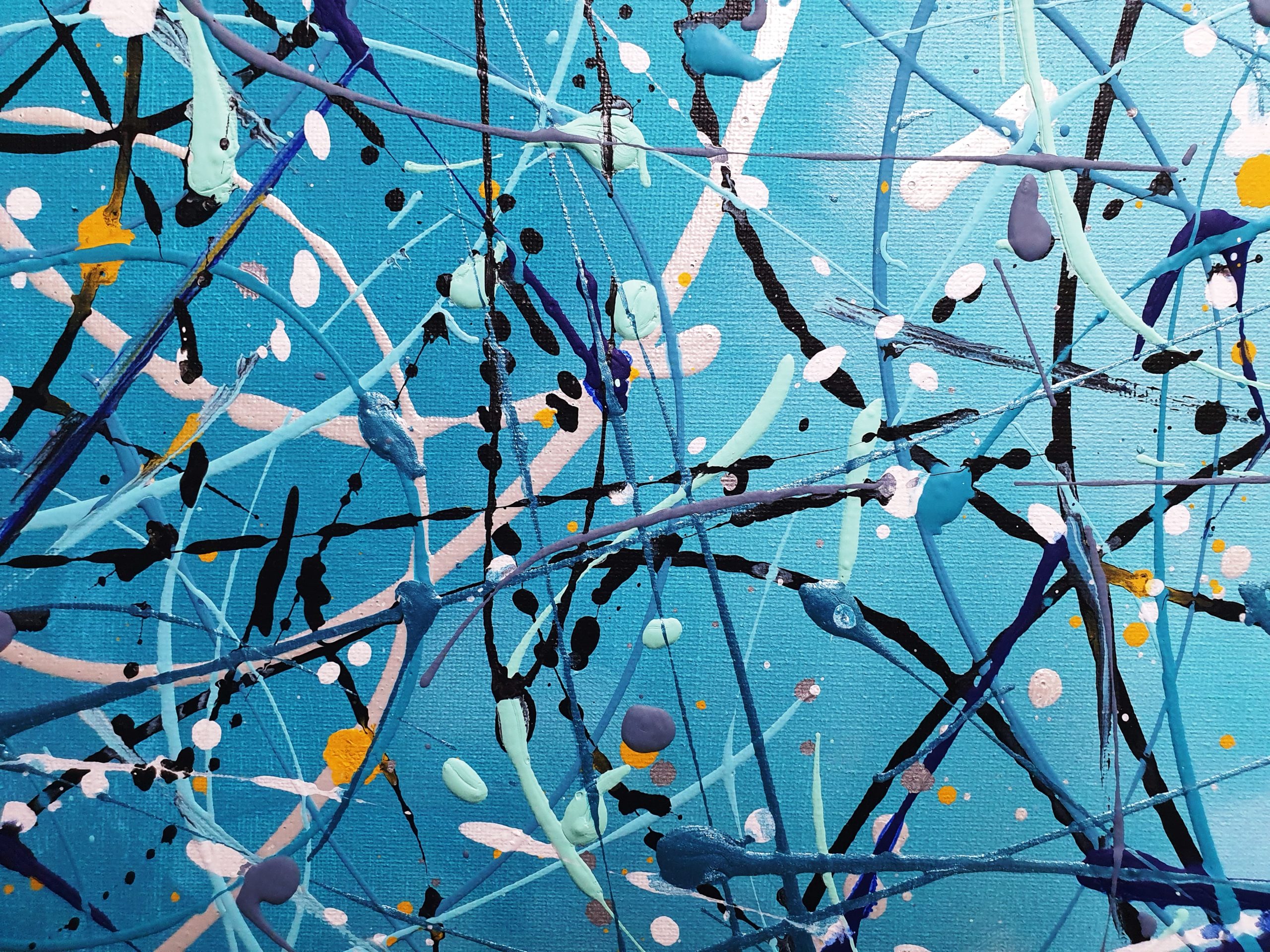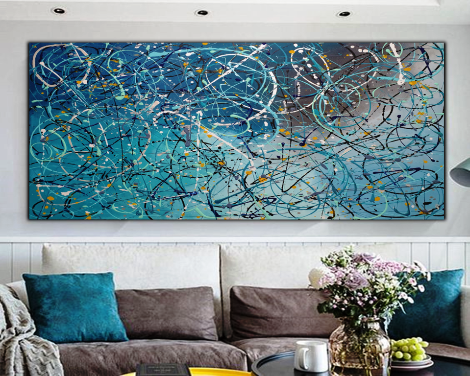 יצירה אבסטראקטית צבעונית בעבודת יד בצבעים שמכניסים חיים לחלל..