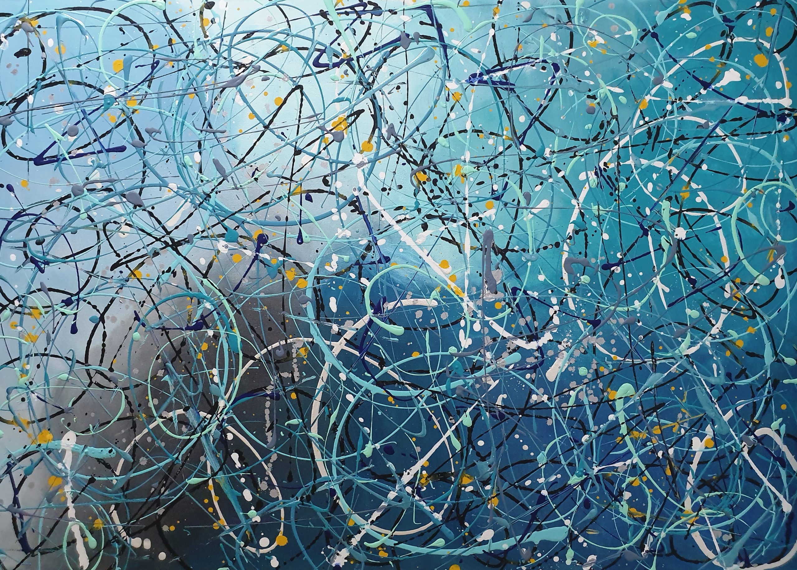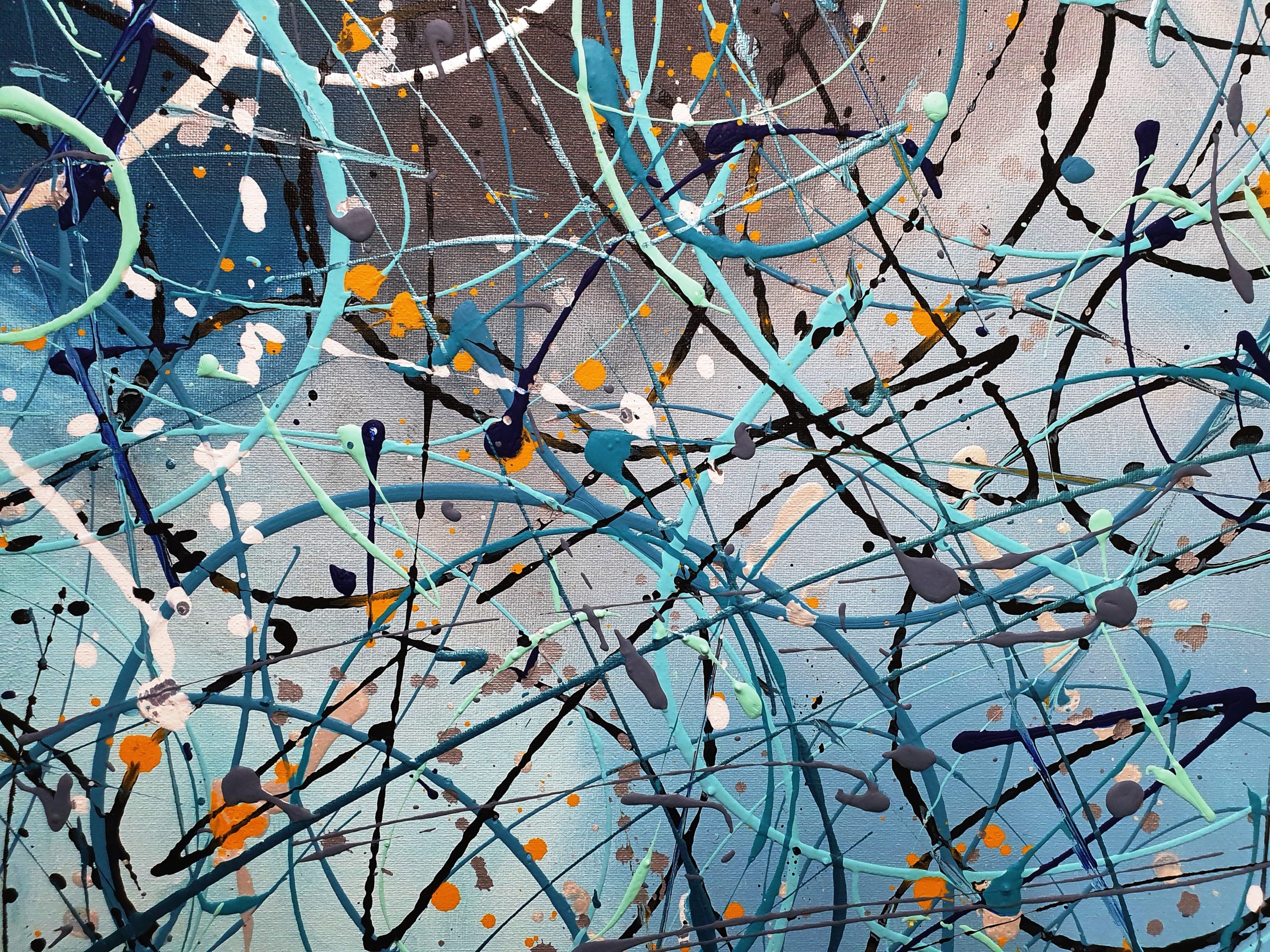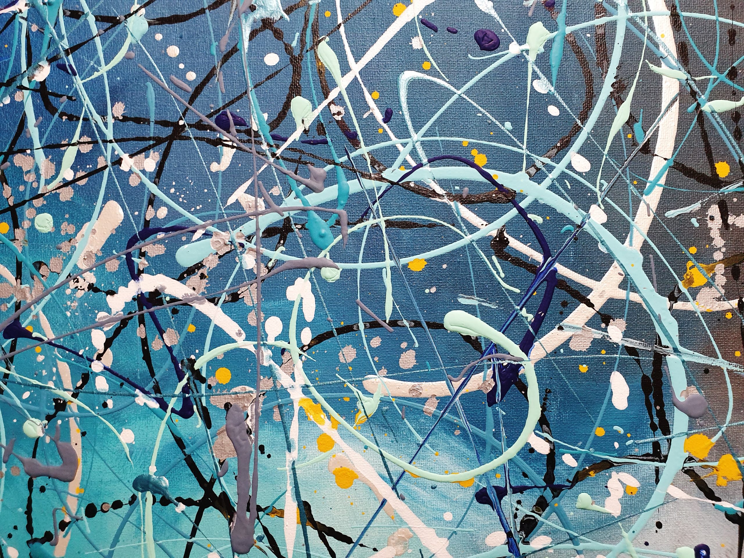 יצירה אבסטראקטית צבעונית בעבודת יד בצבעים שמכניסים חיים לחלל..