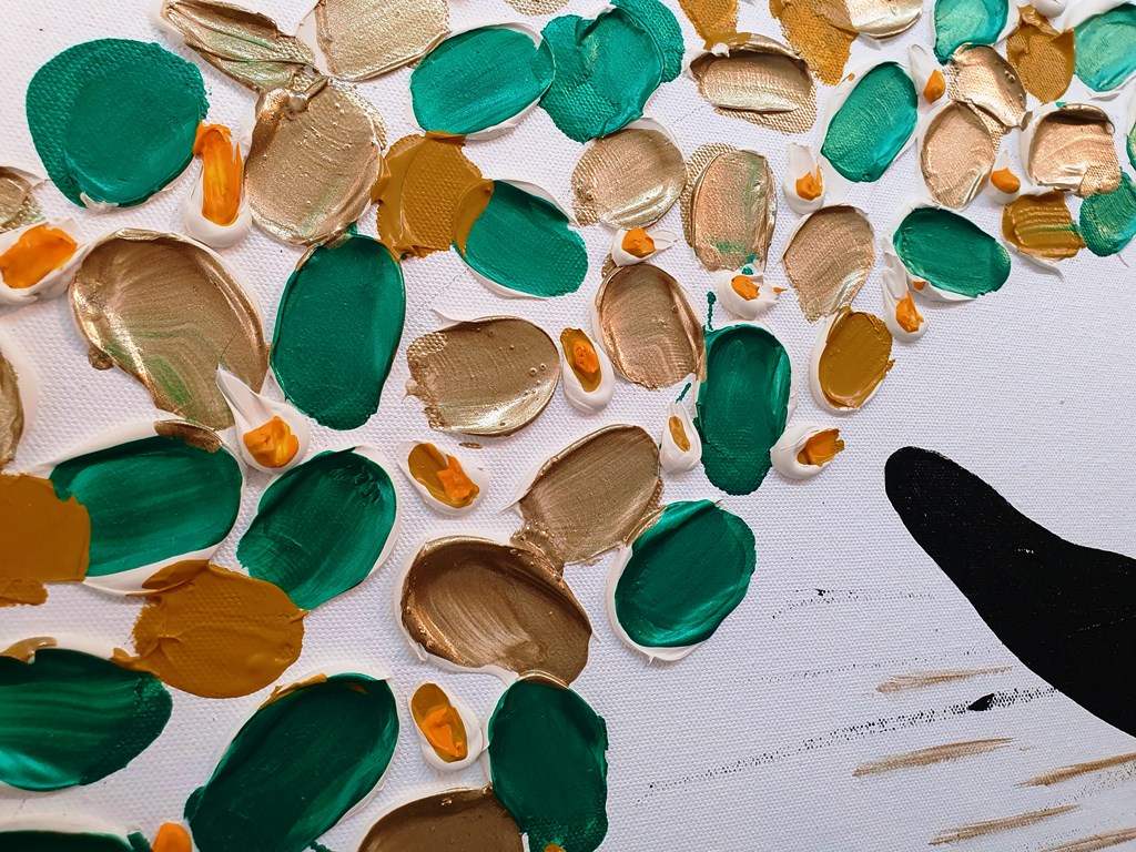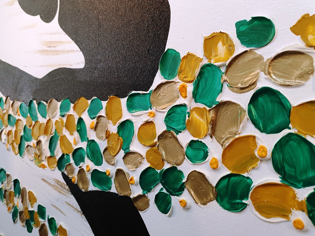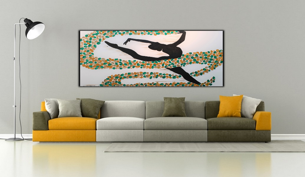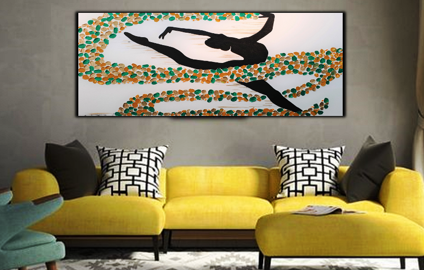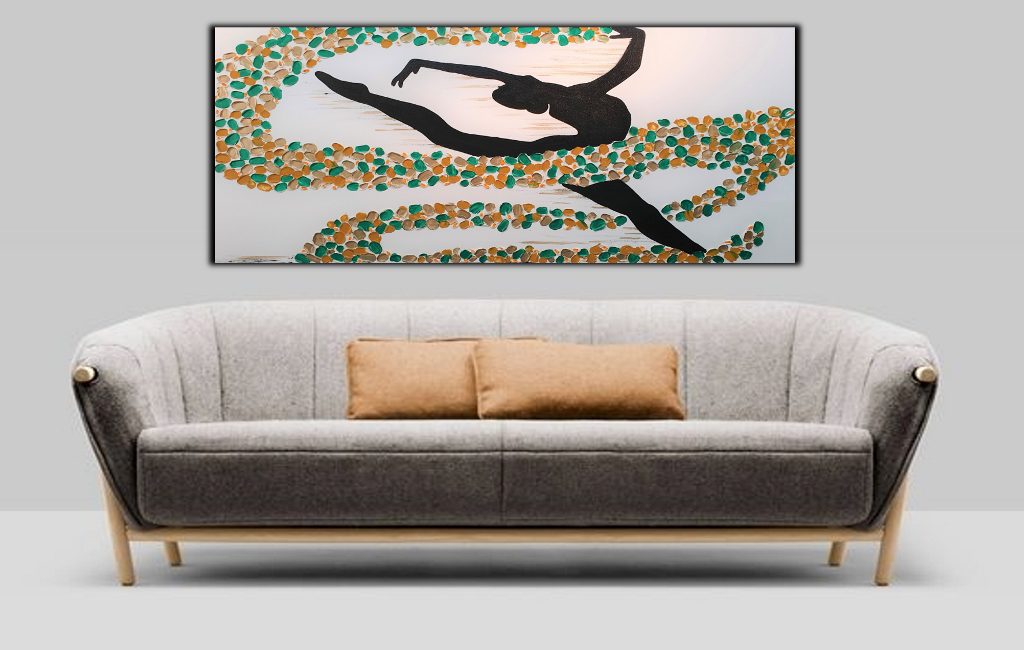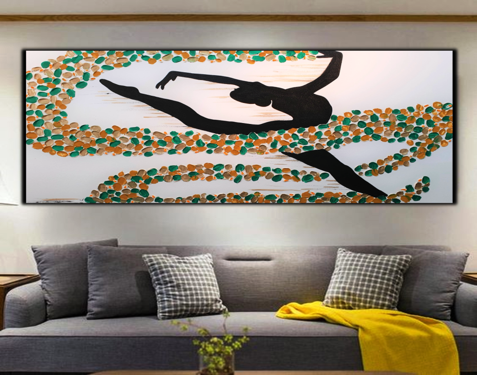 תמונת רקדנית בריקוד עם צבעים חיים וטקסטורות מובלטות (גוונים ירוקים)