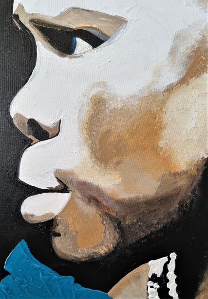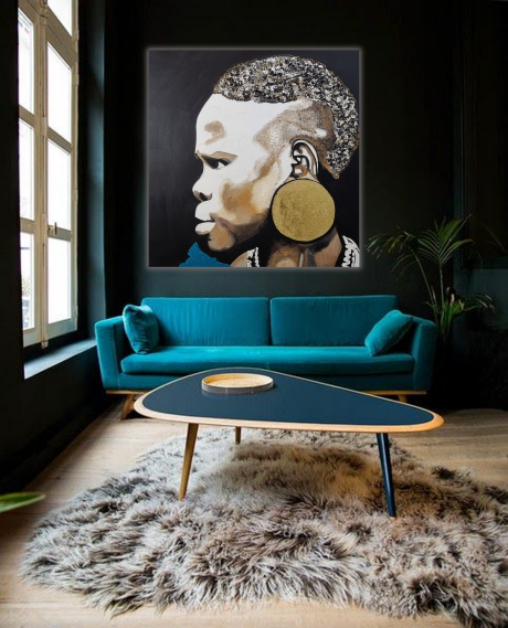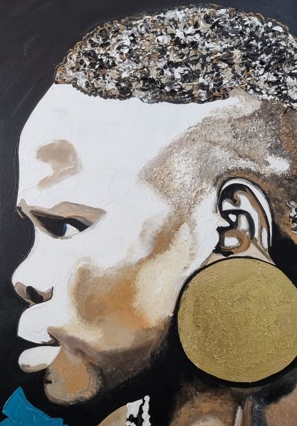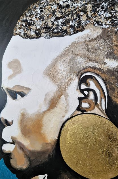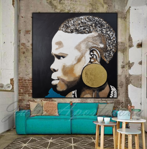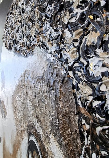 יצירה אבסטרקטית בעבודת יד של איש כנעני עם טקסטורות מובלטות