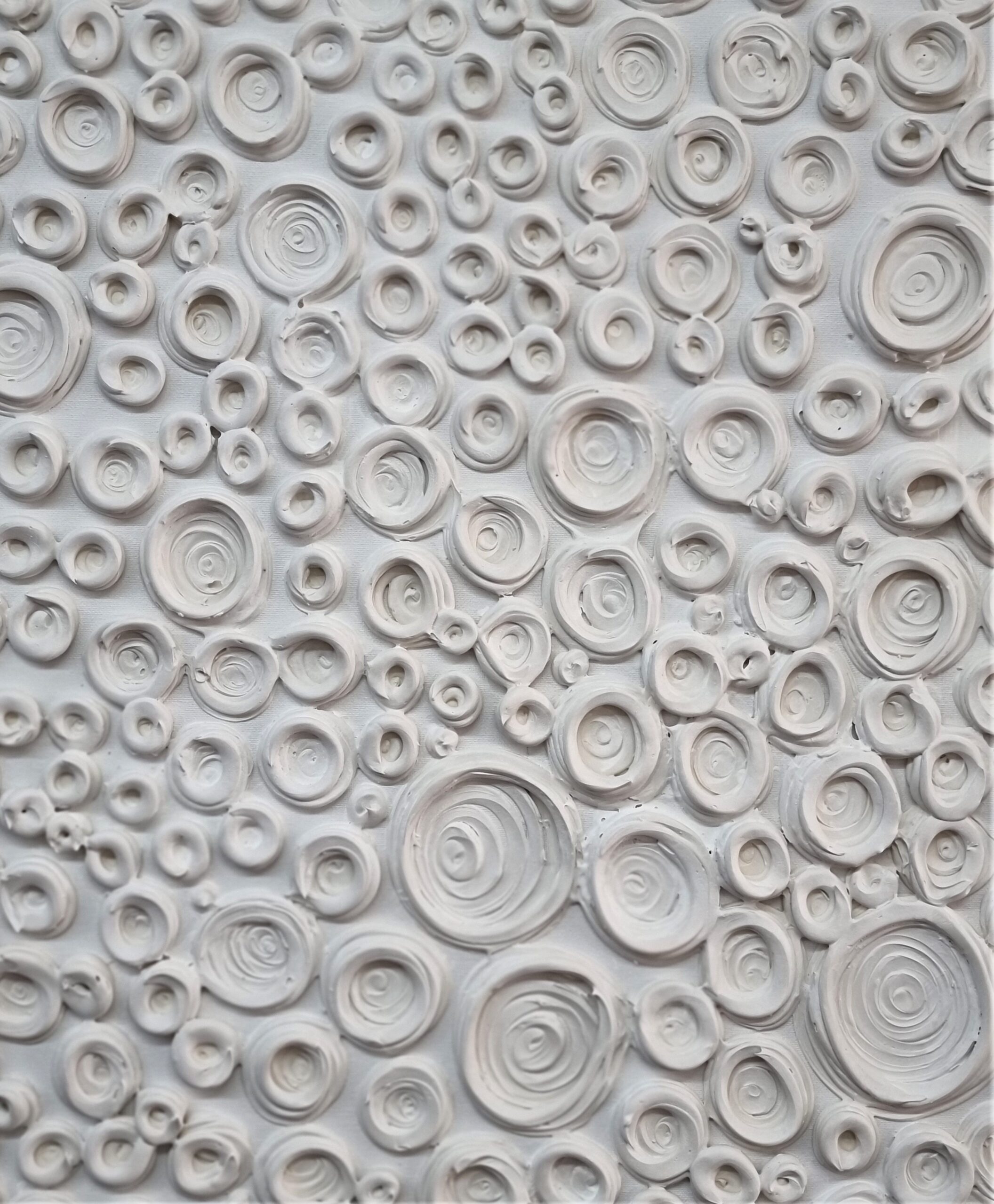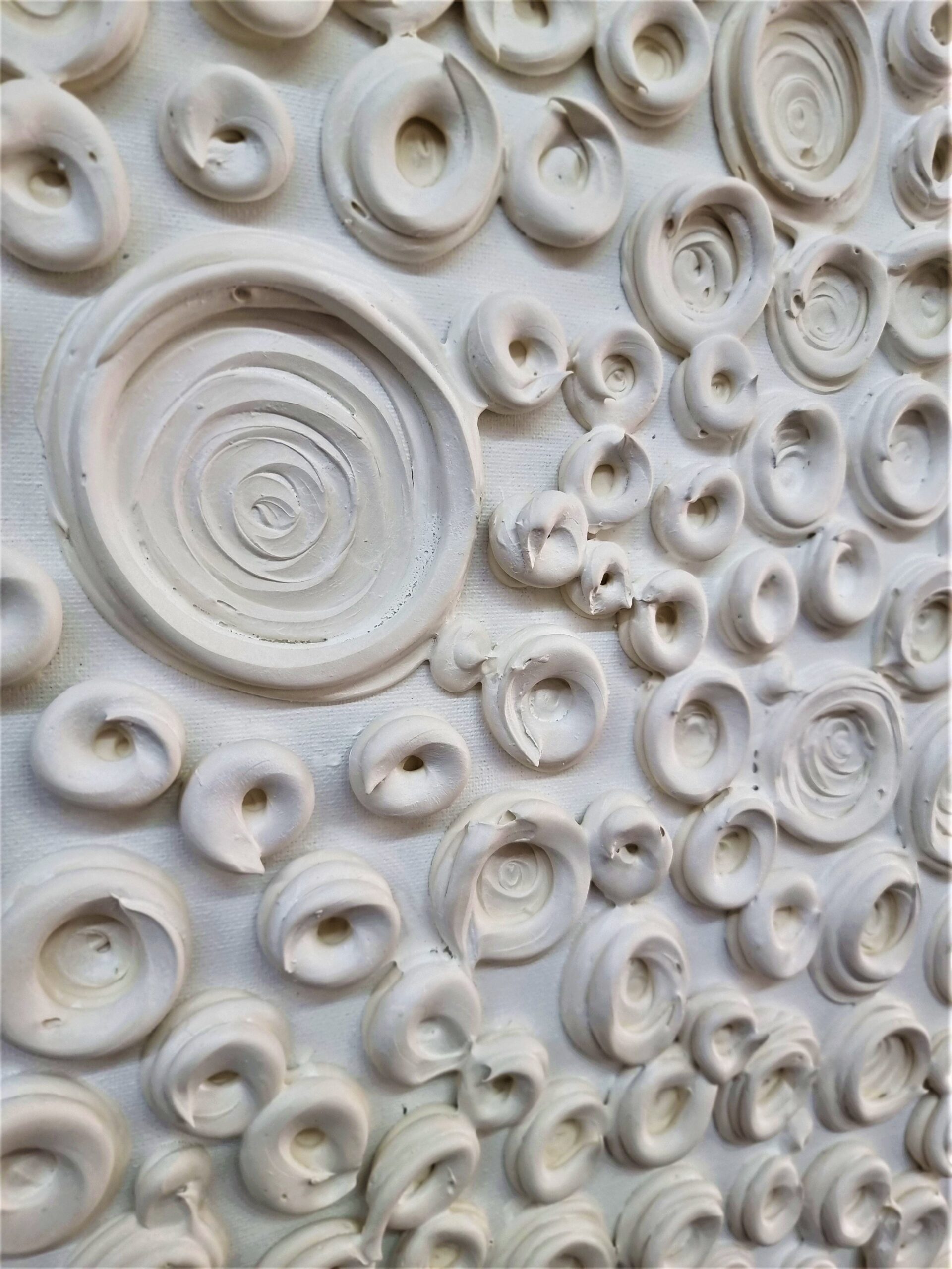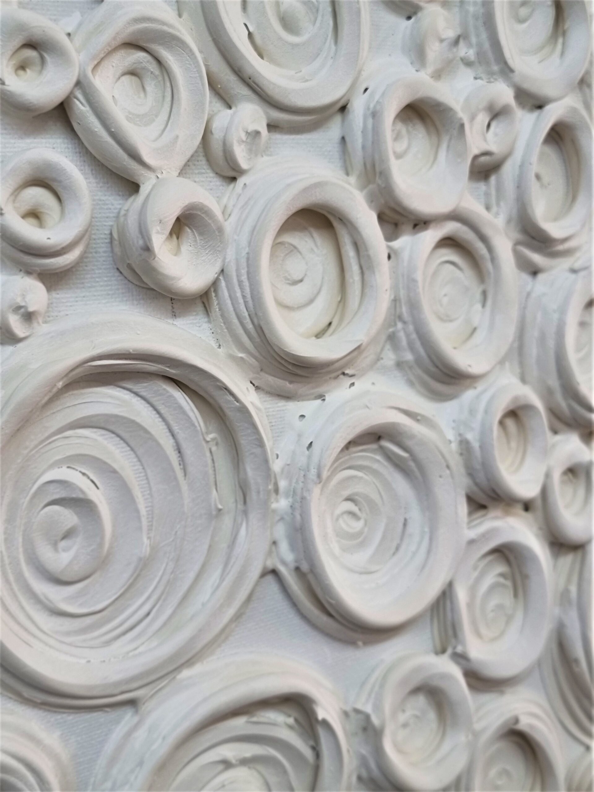 יצירה אבסרקטית עם חומרי עיצוב בגוונים לבנים