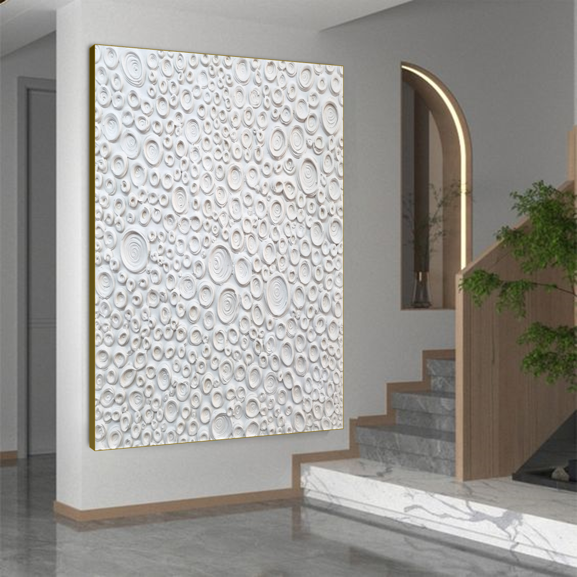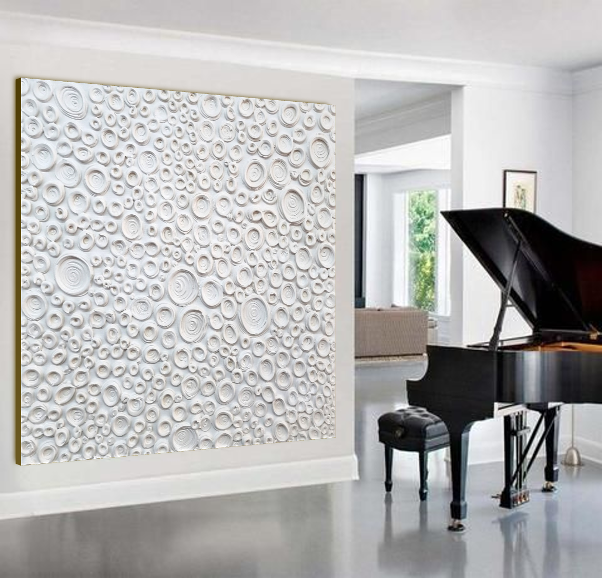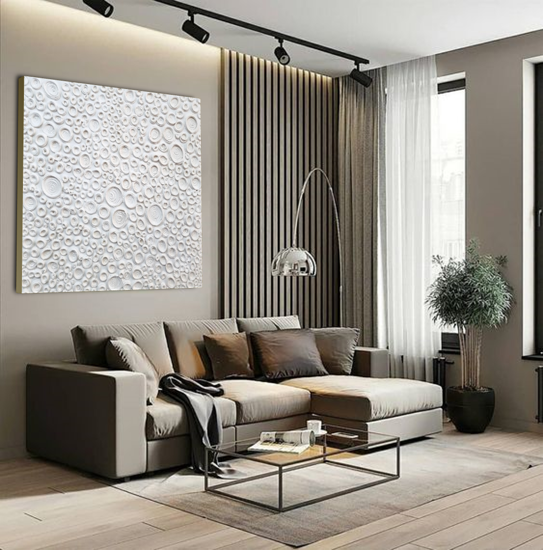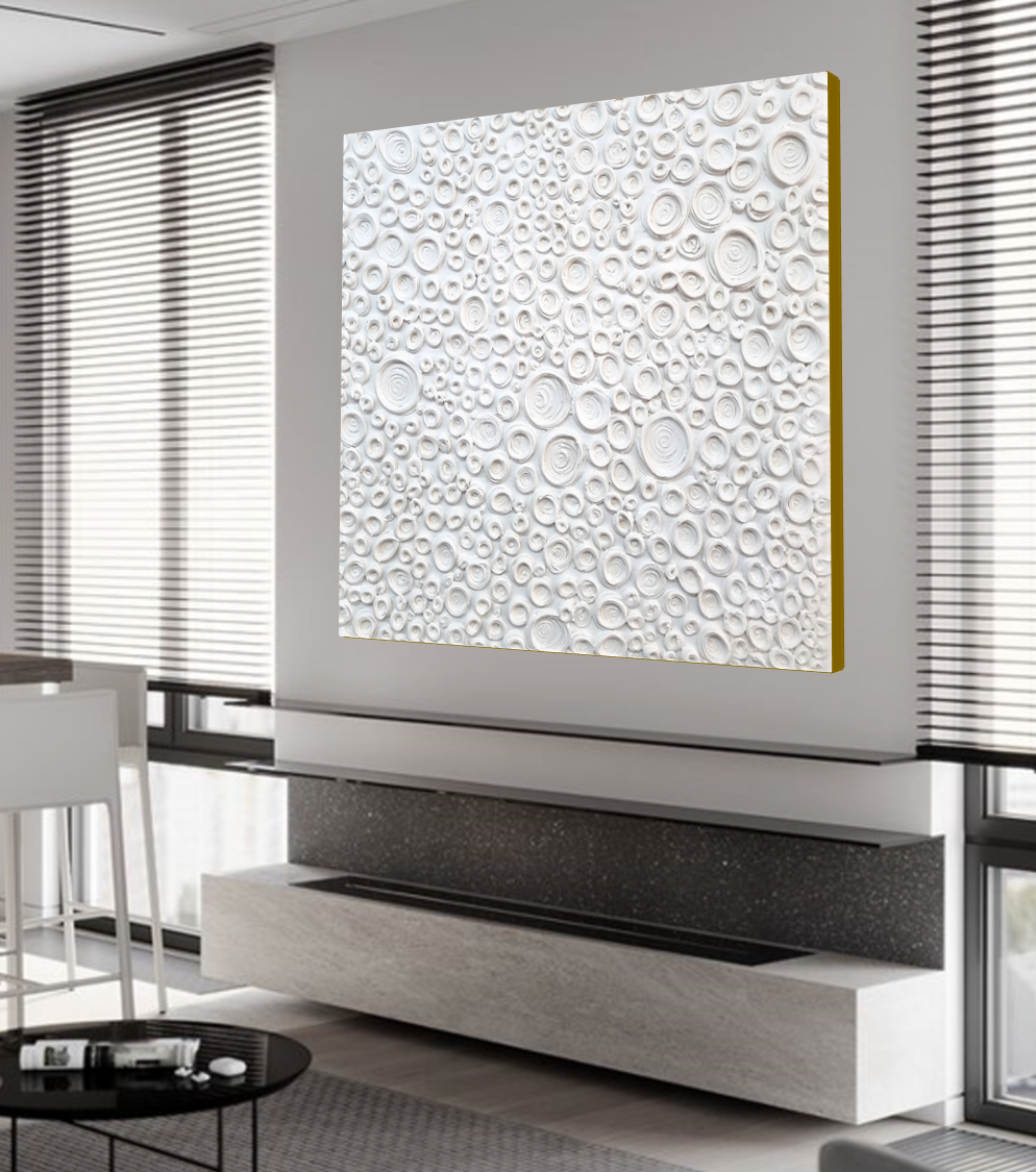 יצירה אבסרקטית עם חומרי עיצוב בגוונים לבנים