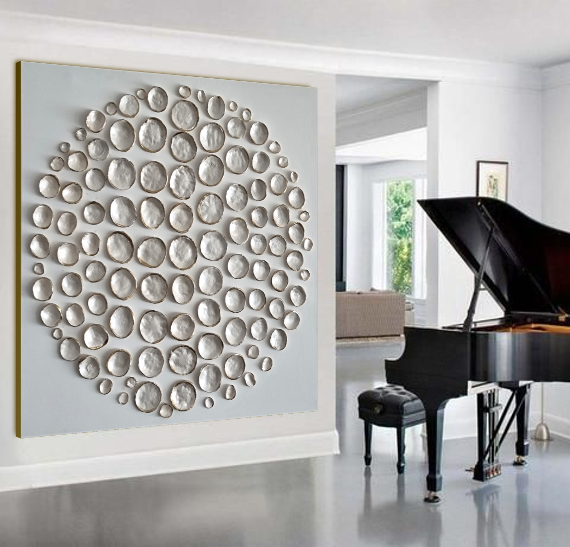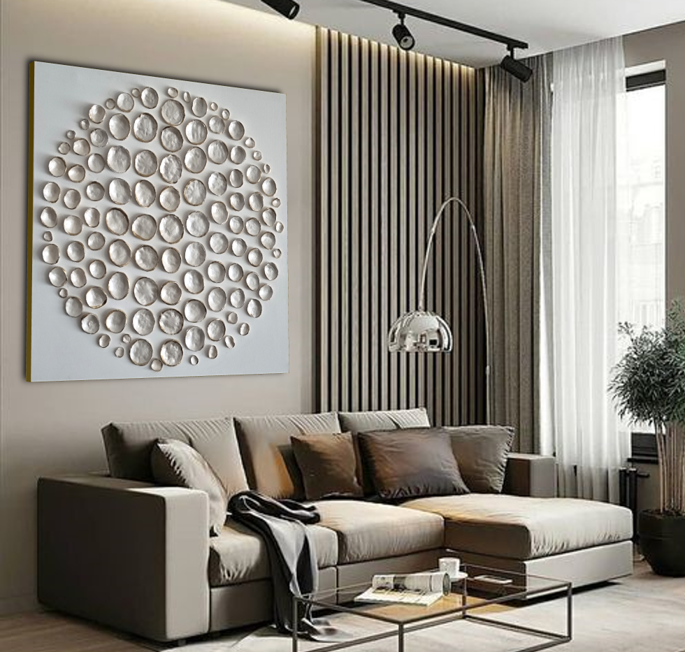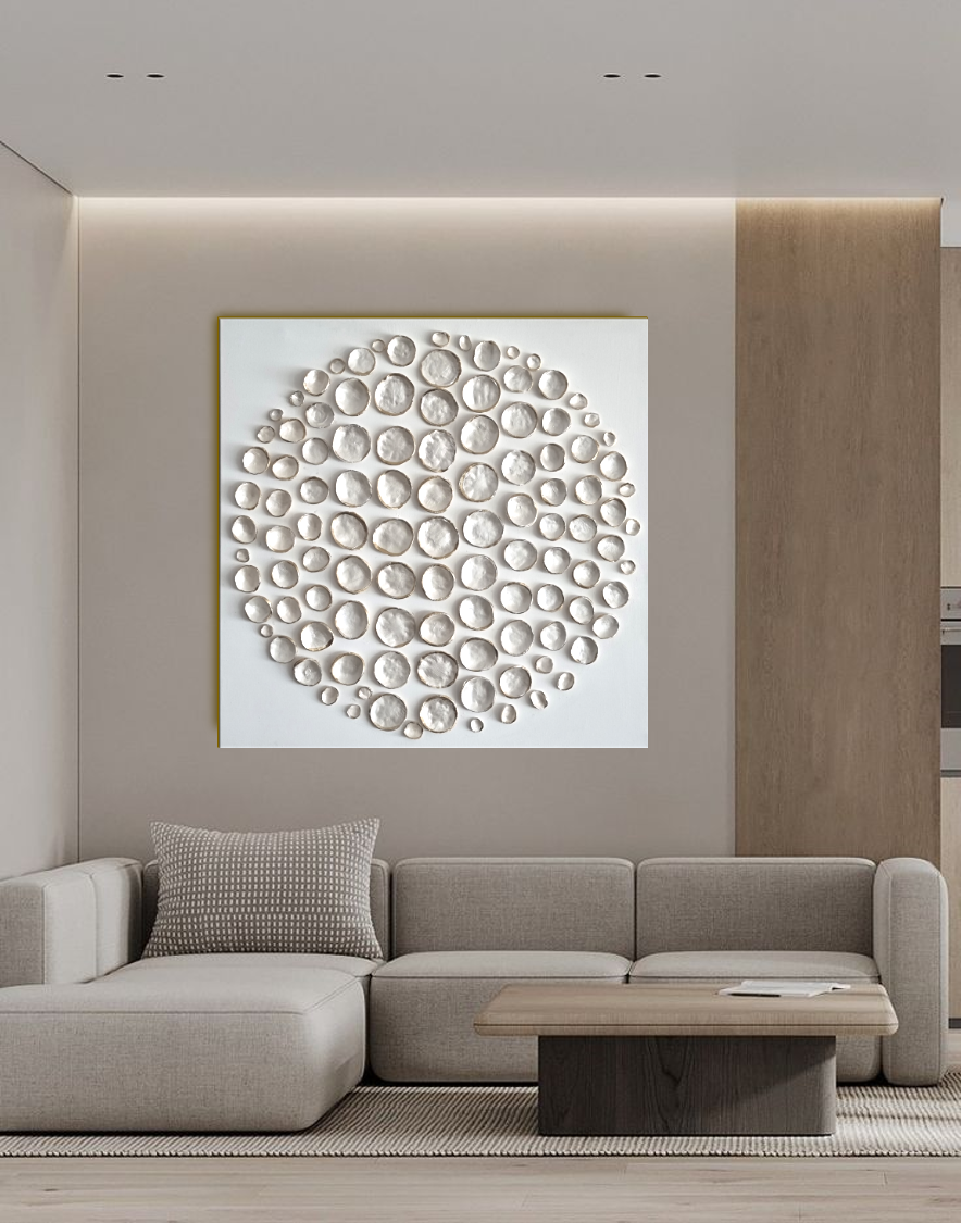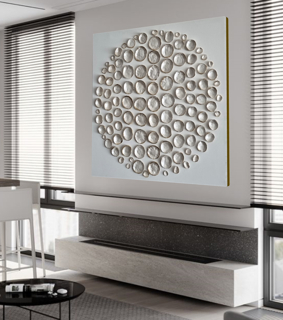 יצירה אבסרקטית קלאסית בגוונים לבן פנינה ושמפניה
