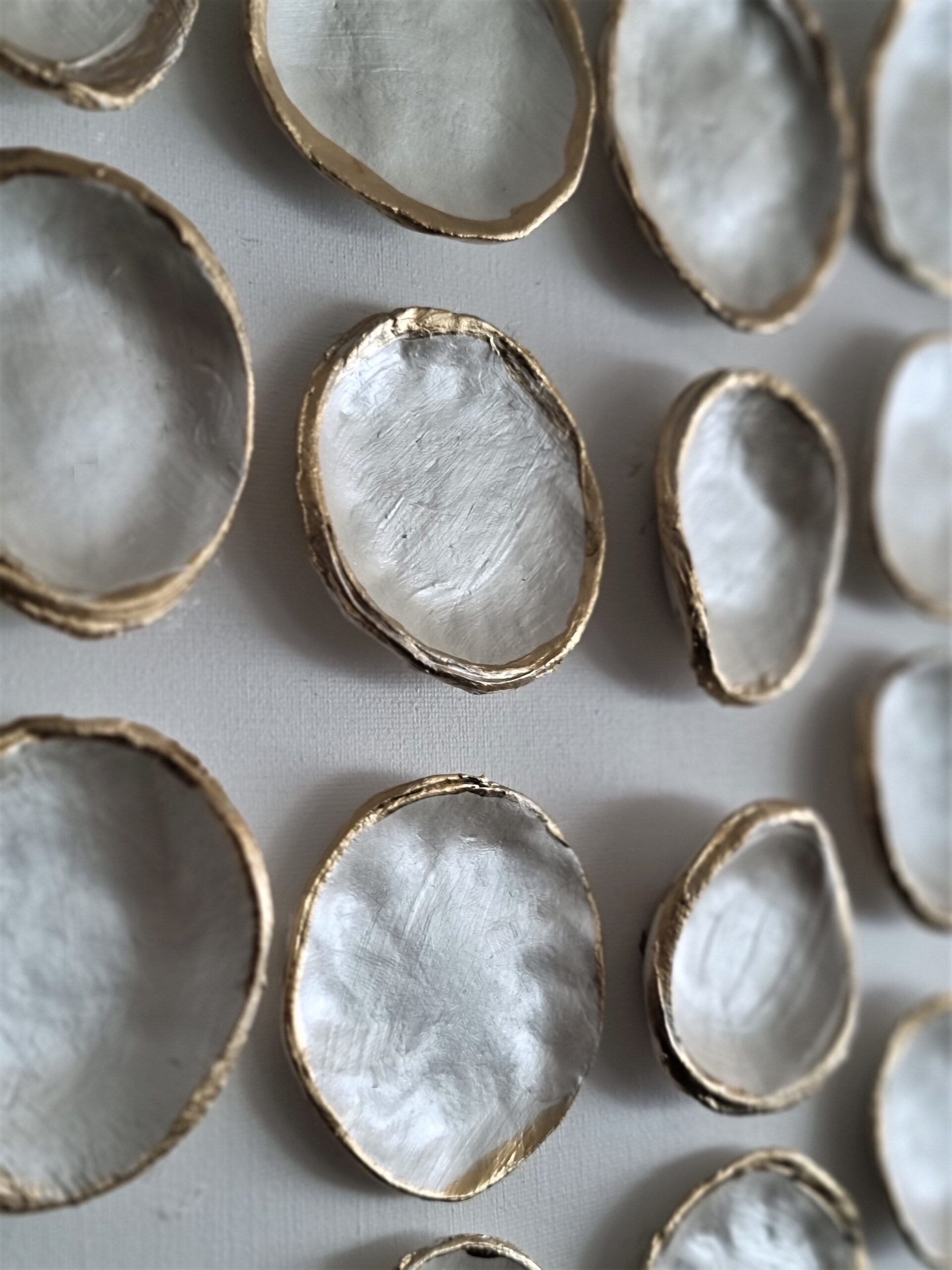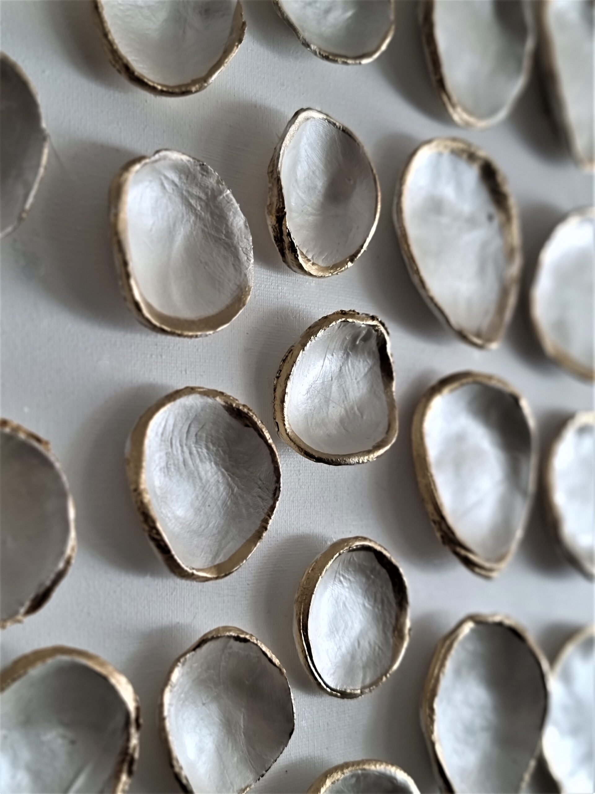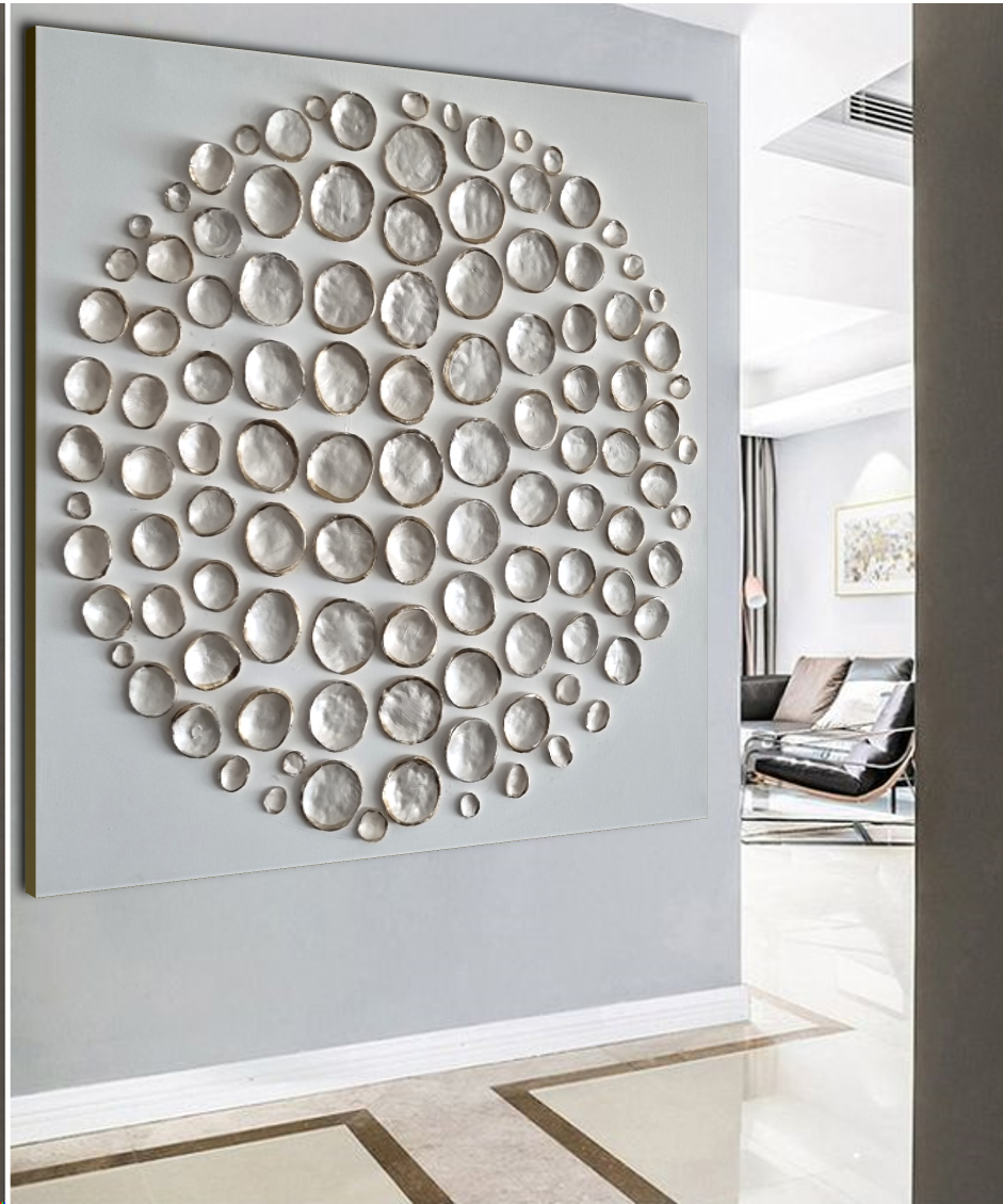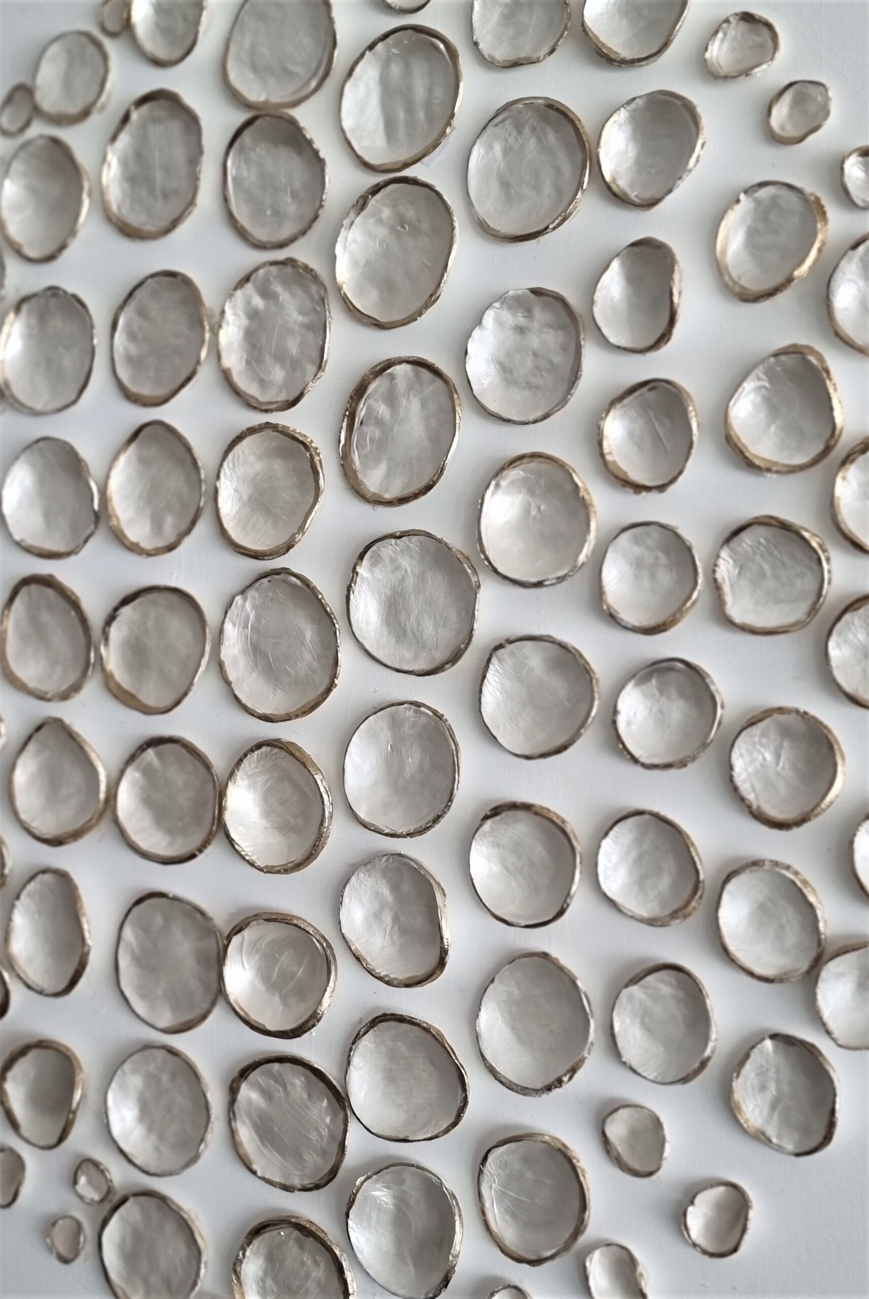 יצירה אבסרקטית קלאסית בגוונים לבן פנינה ושמפניה