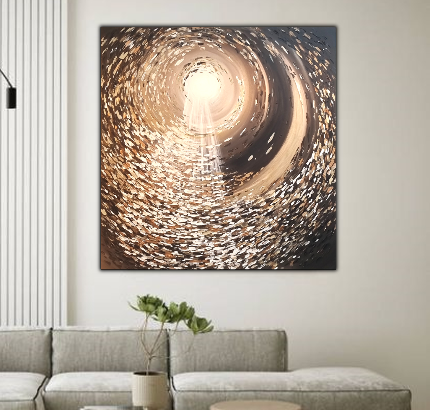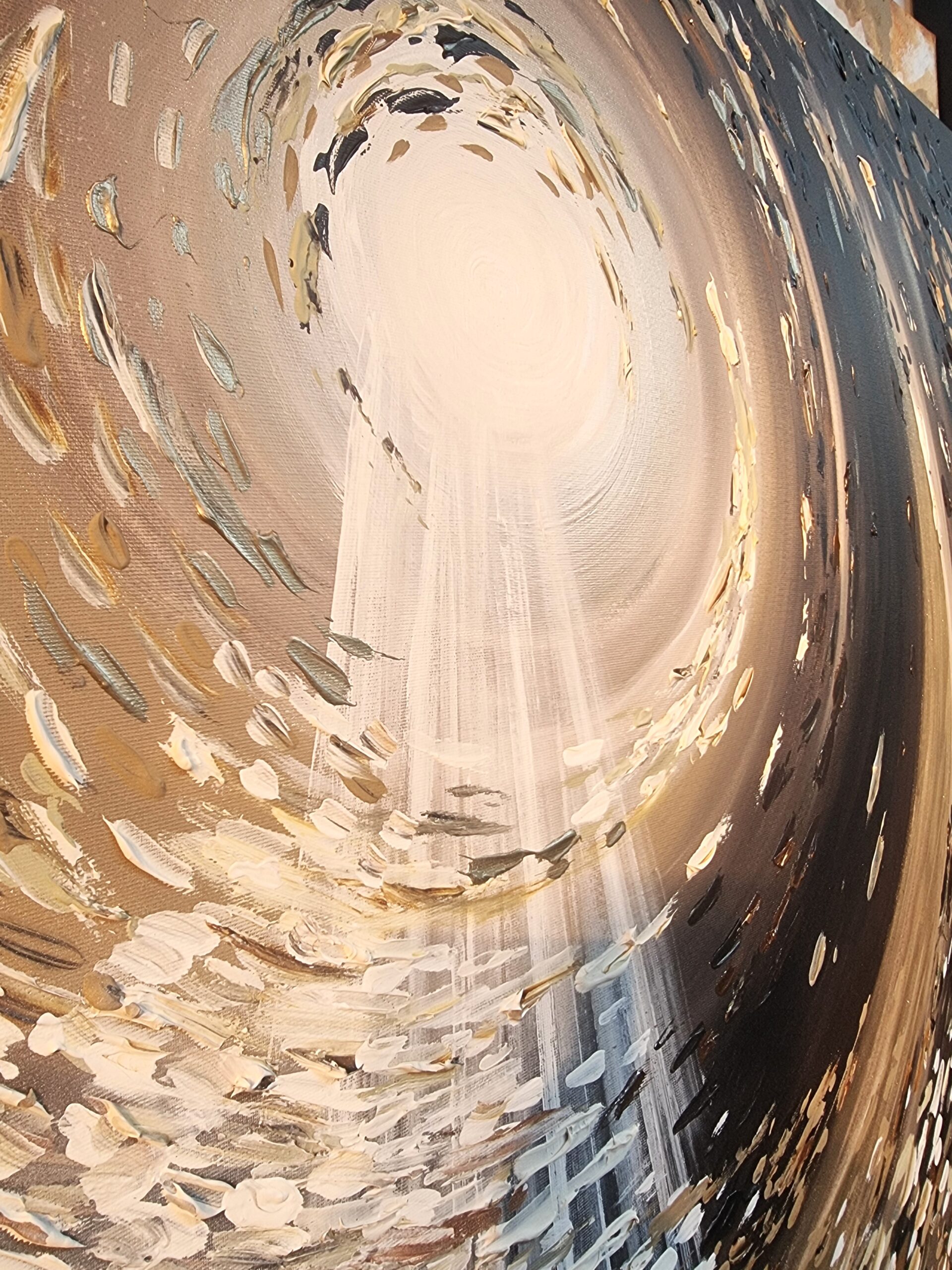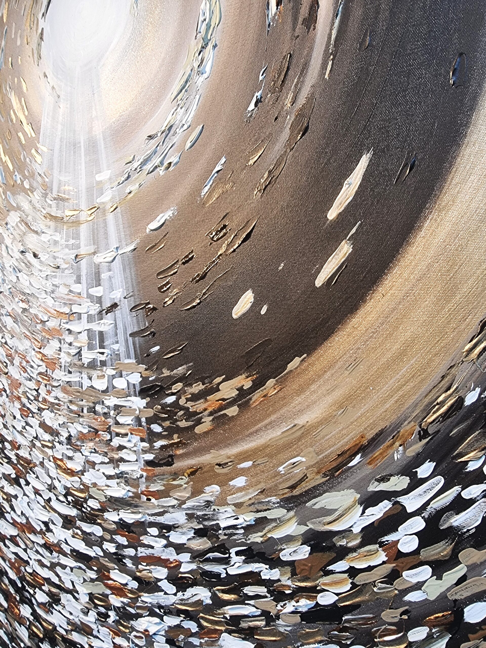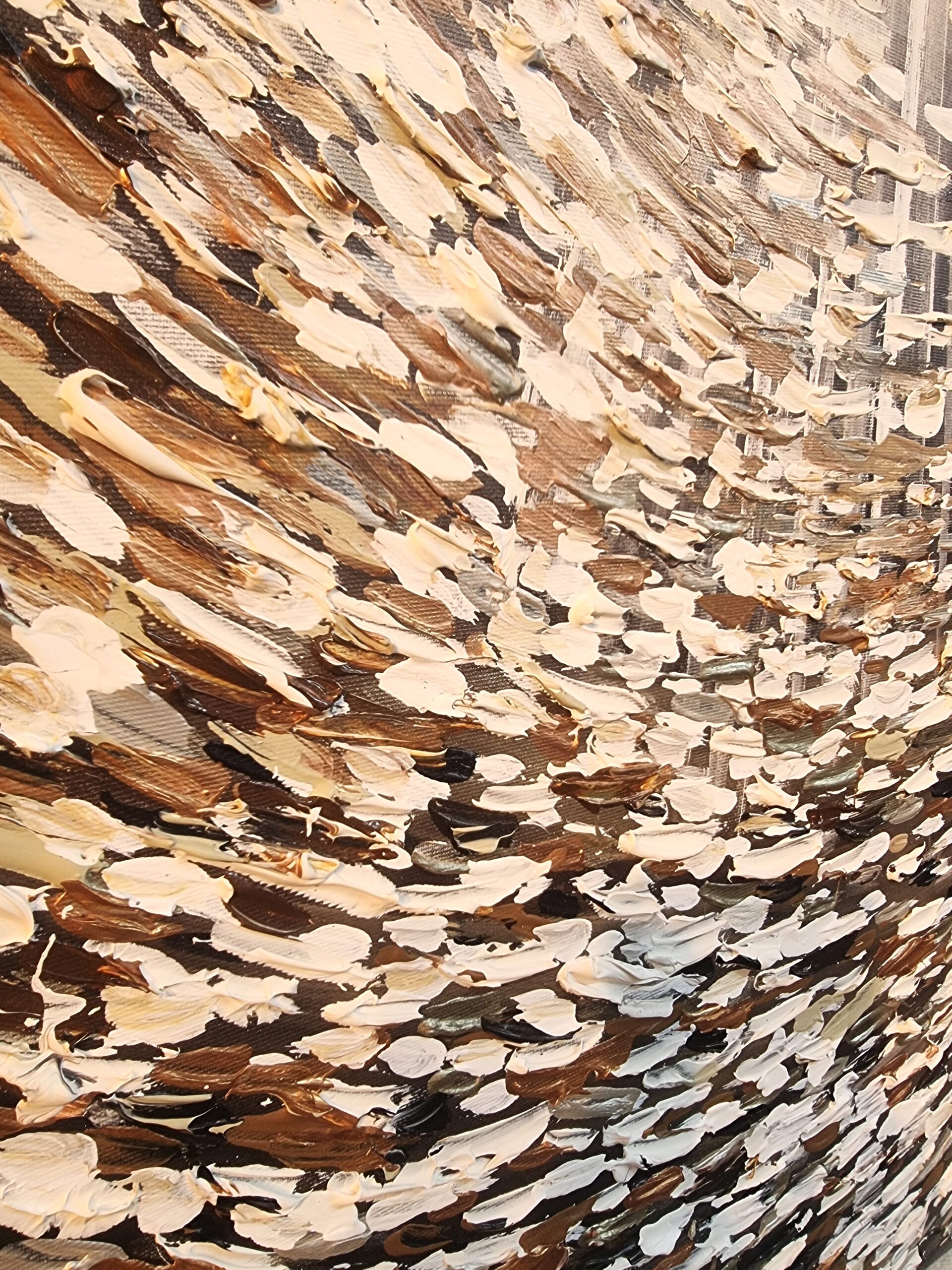 יצירה אבסטרקטית בעבודת יד עם צבעים בגוונים שונים.