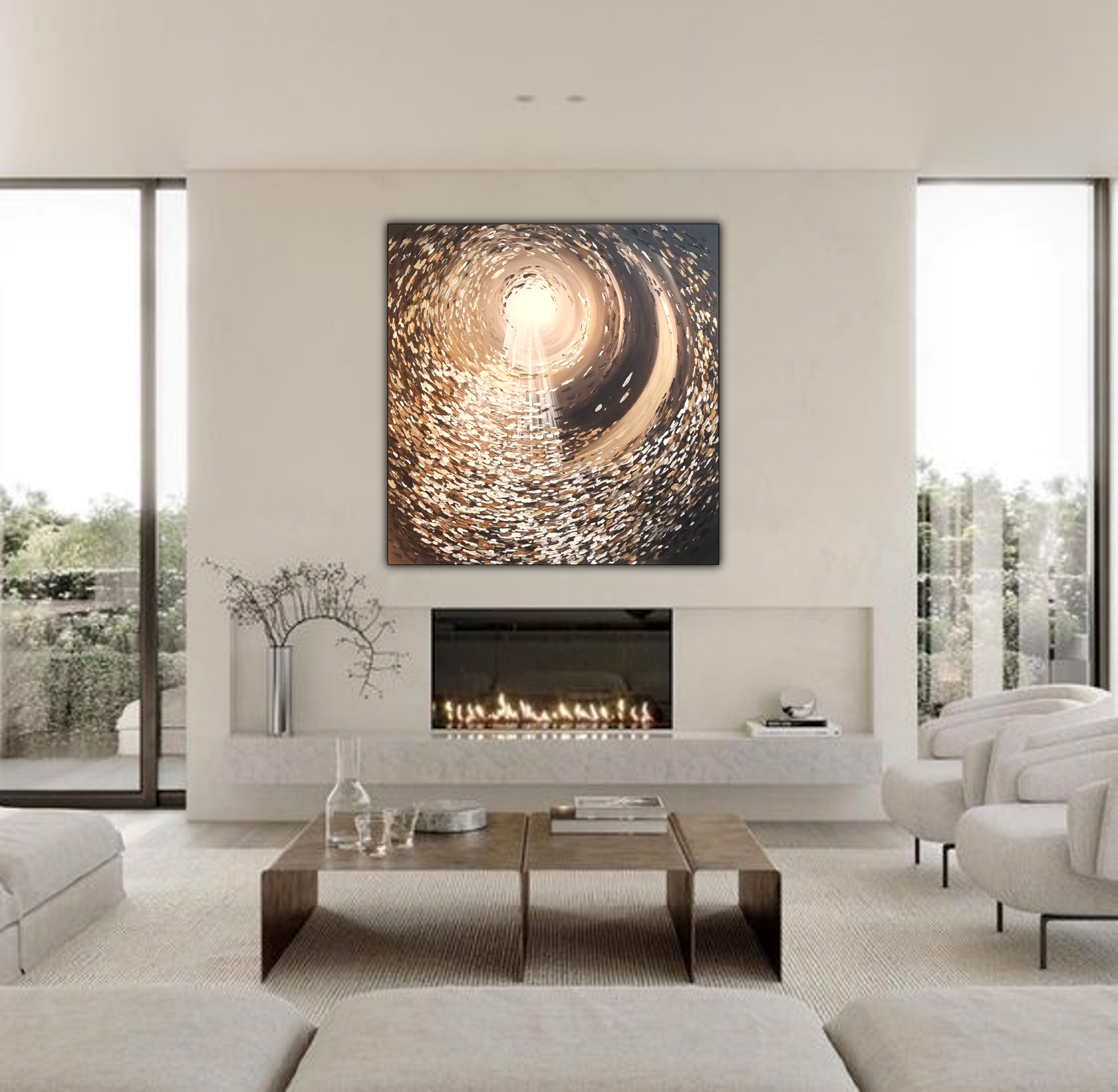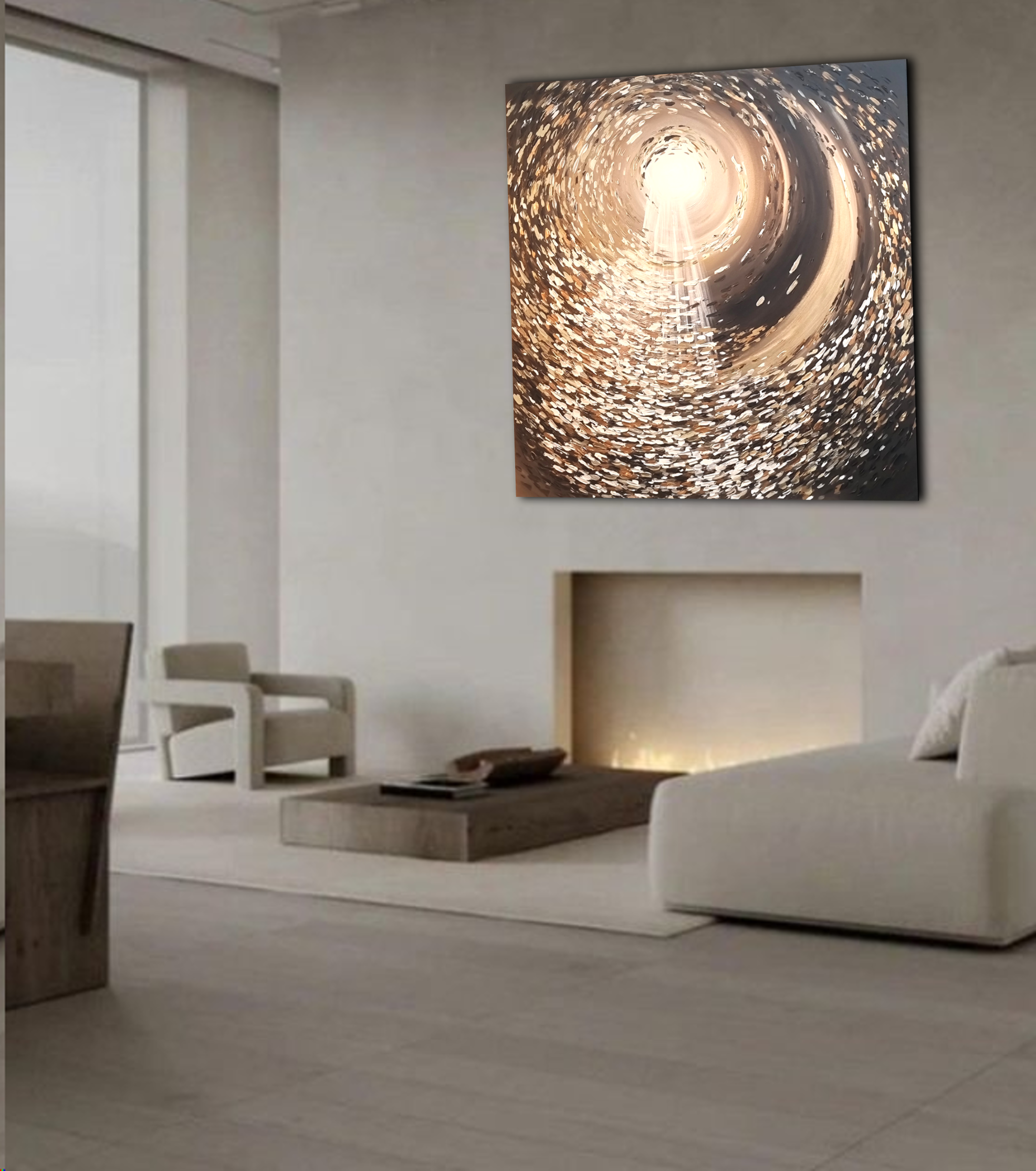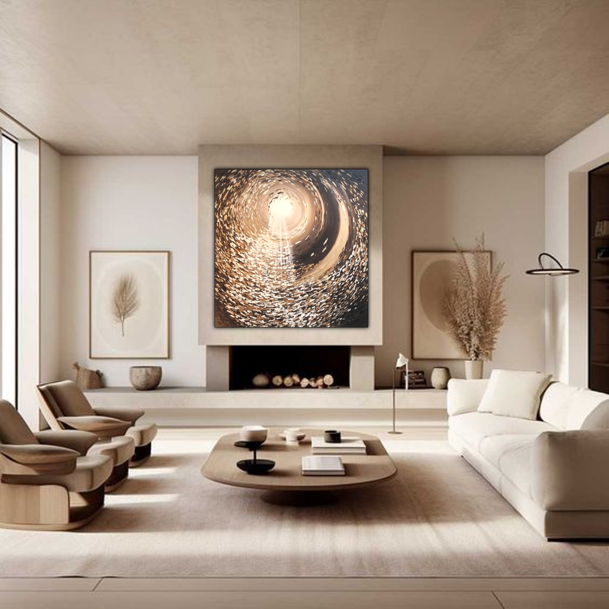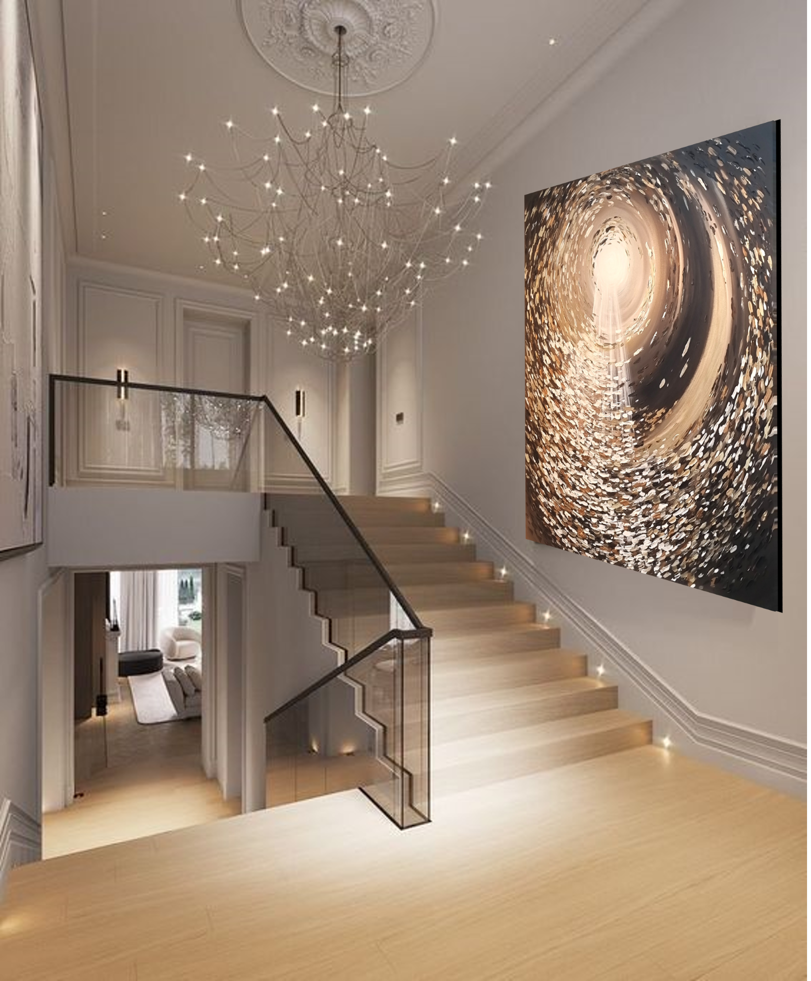 יצירה אבסטרקטית בעבודת יד עם צבעים בגוונים שונים.
