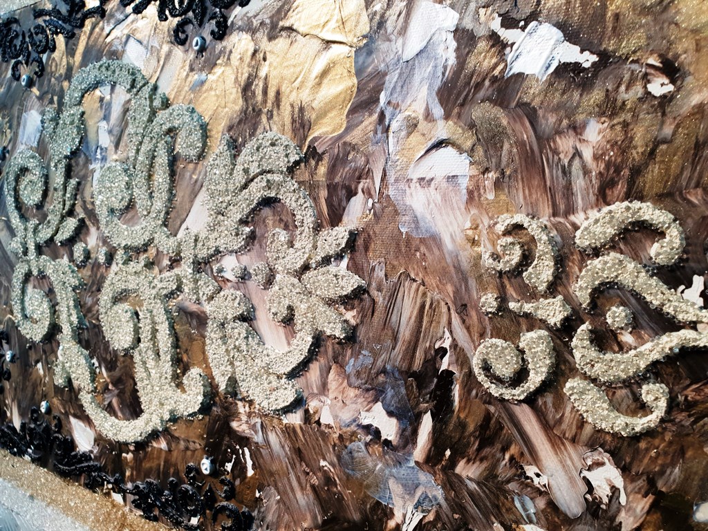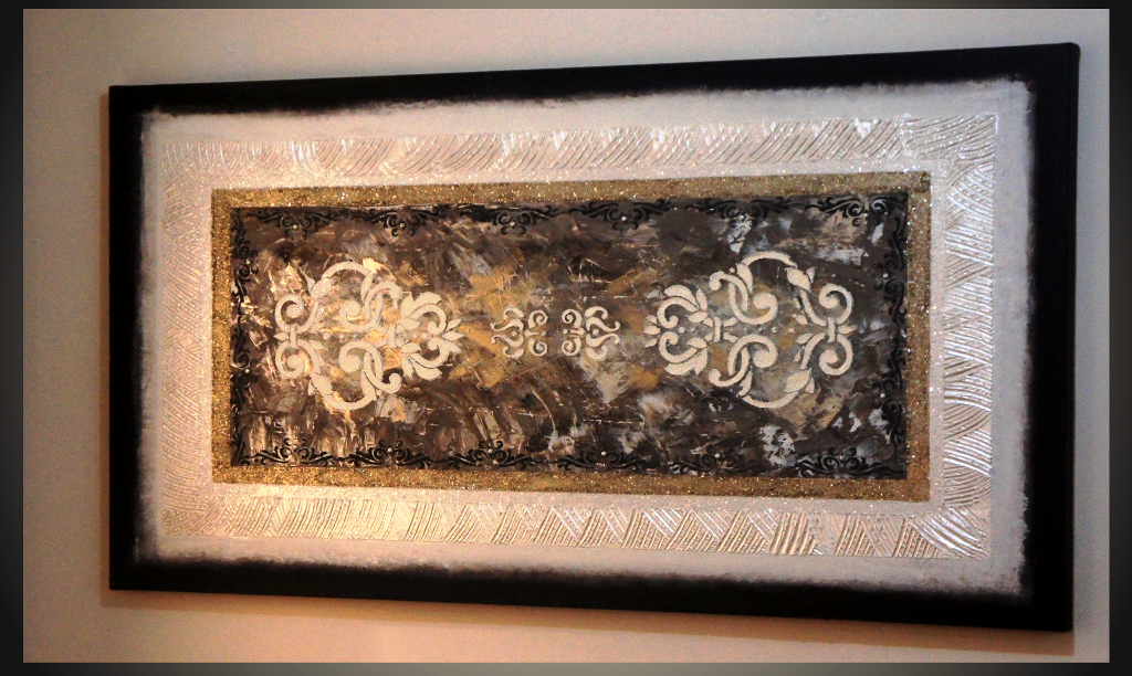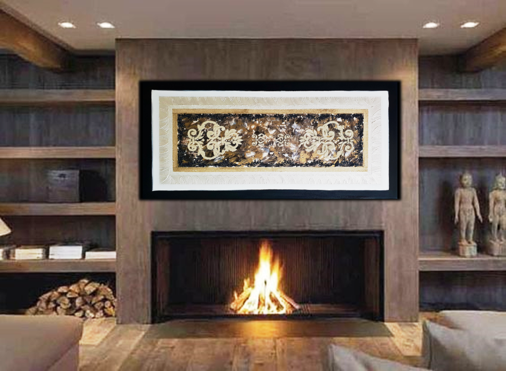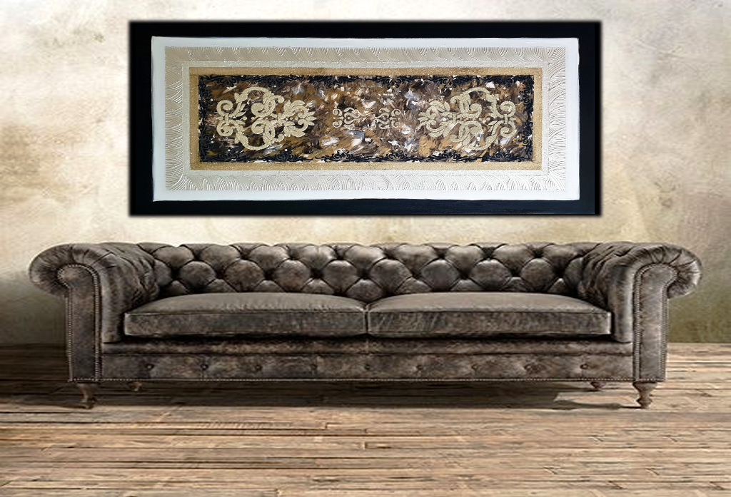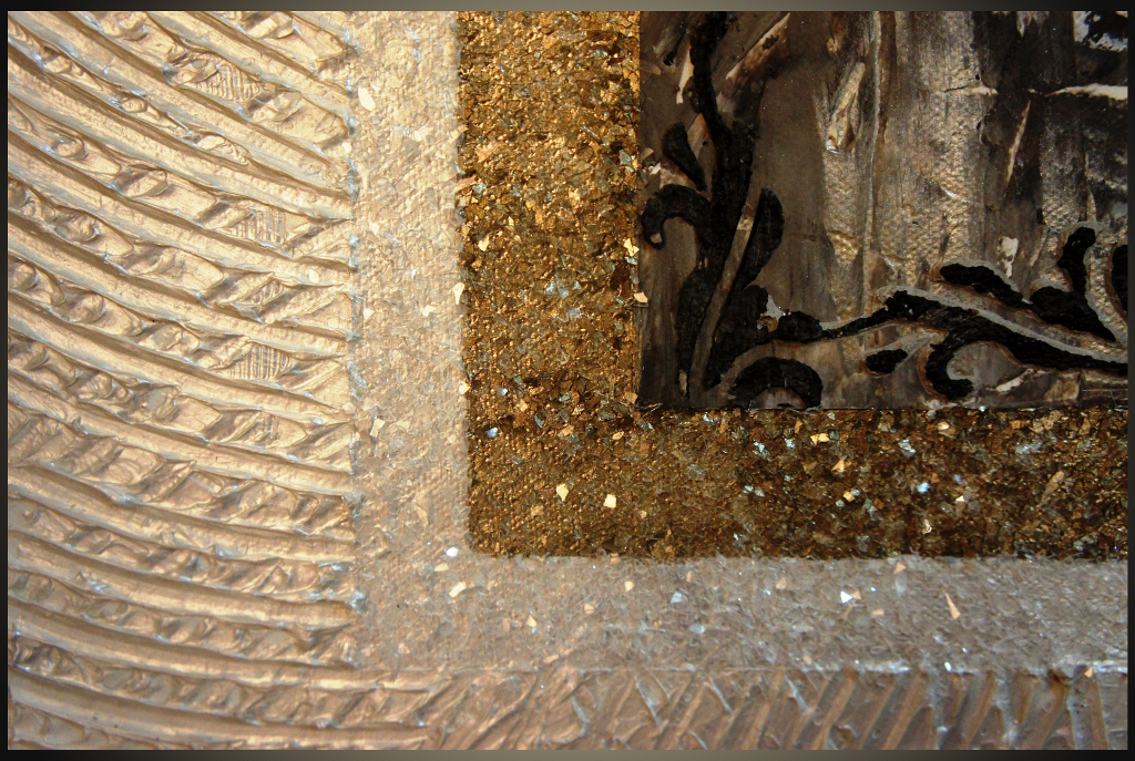 יצירה אבסטרקטית בעבודת יד דגם וינטג' עם שברי זכוכית וטקסטורות מובלטות.