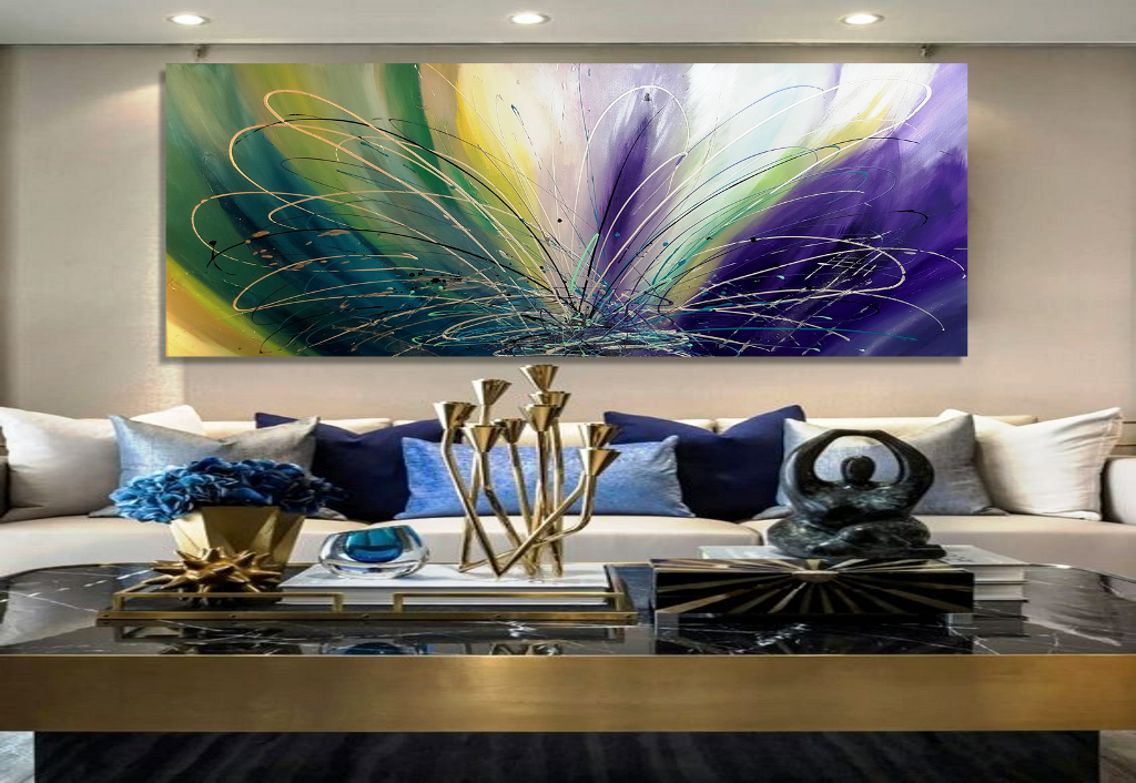 יצירת אבסטראקטית בעבודת יד בצבעים שונים